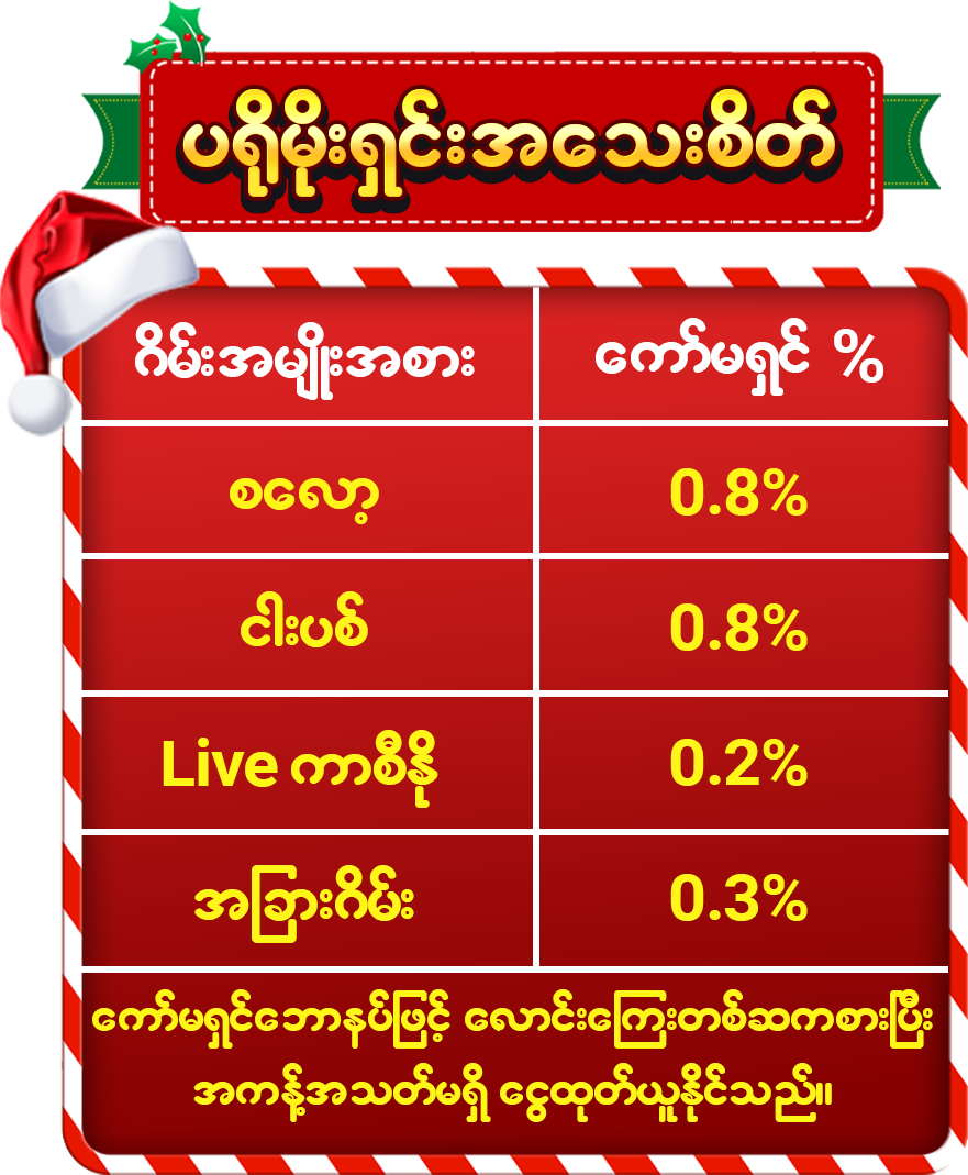 ⚠️ ဤပ႐ိုမိုရွင္းသည္ 2025.10.18 ေန႔တြင္စတင္အက်ဳံးဝင္မည္။